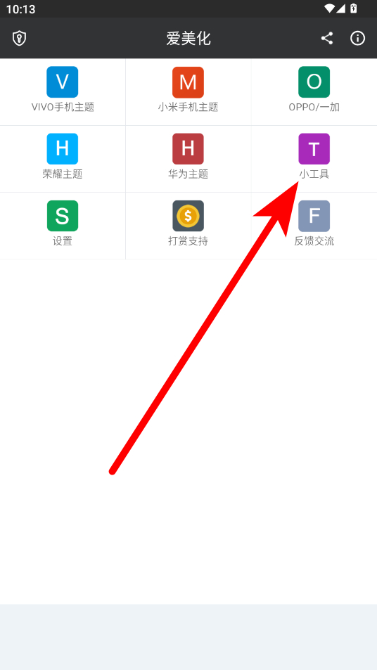 2、进入爱美化App主界面后,点击“小工具”选项。