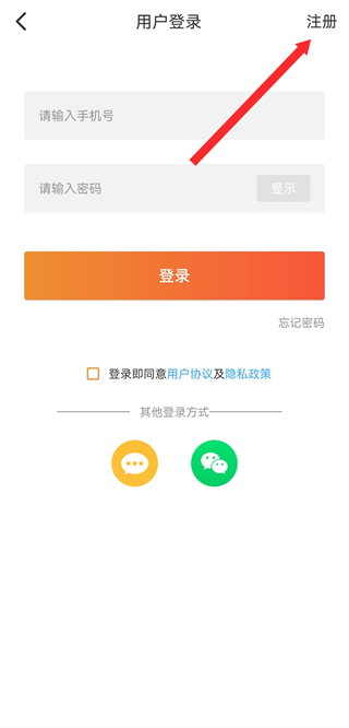 3、在用户登录的界面,点击右上角注册,进入注册的页面。