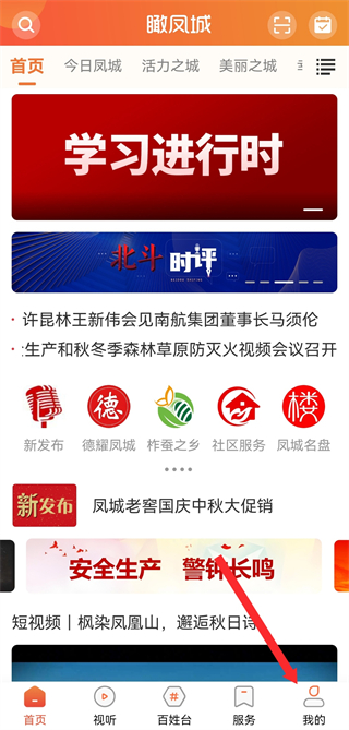 1、在瞰凤城的首页,点击底部我的按钮,进入个人的页面。