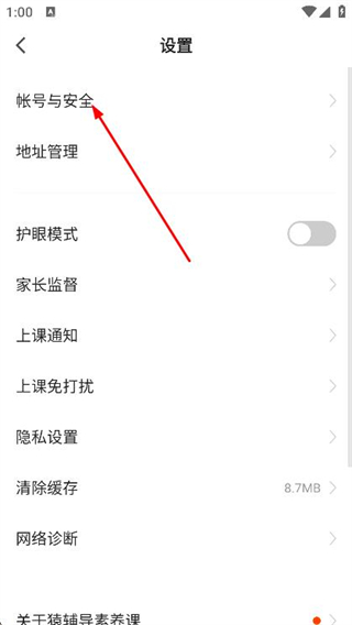 3、在设置页面中,找到并点击帐号与安全选项。