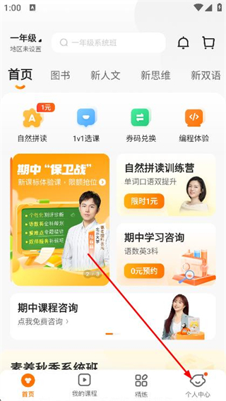 1、打开猿辅导素养课,点击底部的个人中心。