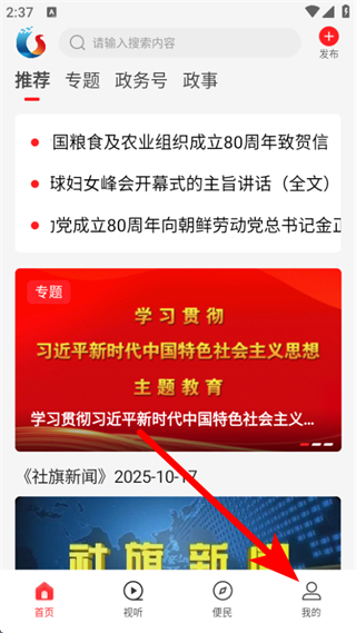 1、在云上社旗的首页,点击底部我的,进入个人的页面。
