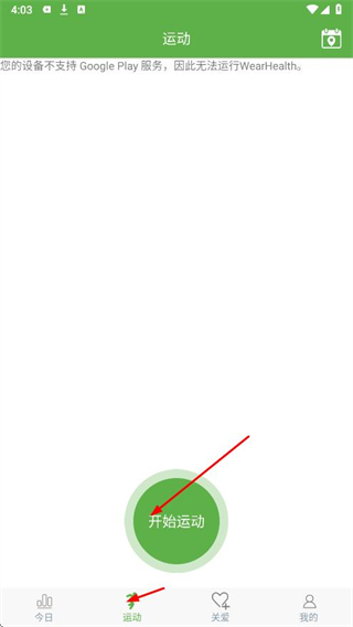 2、点击底部导航栏的运动,进入页面后点击开始运动,可以记录运动过程,帮助用户了解运动状态和数据,更好地管理和规划运动。