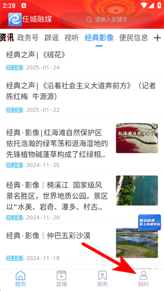 1、在任城融媒的首页,点击底部我的按钮,进入个人的页面。