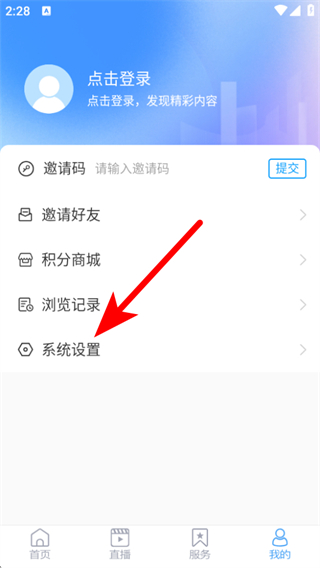 2、在个人的页面,点击系统设置按钮,进入系统设置的页面。