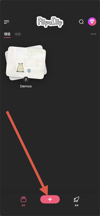 1、打开Flipaclip应用,在主界面点击底部中间的加号按钮,开启创建新项目操作。