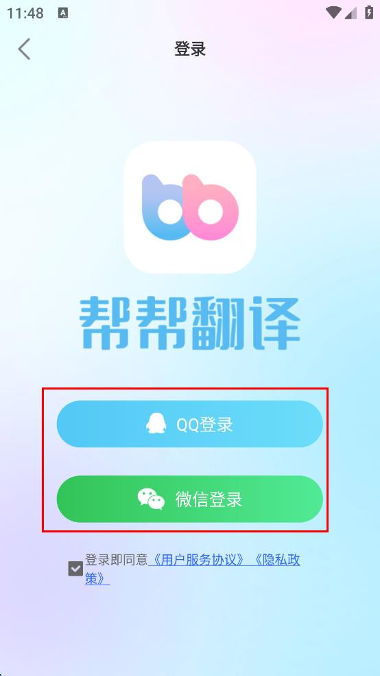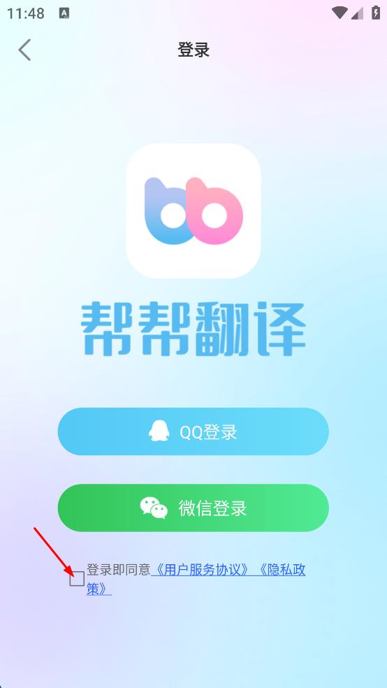 3、在登录页面,勾选登录即同意用户服务协议,隐私政策。