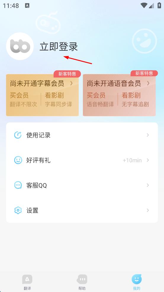 1、打开帮帮翻译软件,点击页面右下角“我的”按钮,进入个人相关页面。