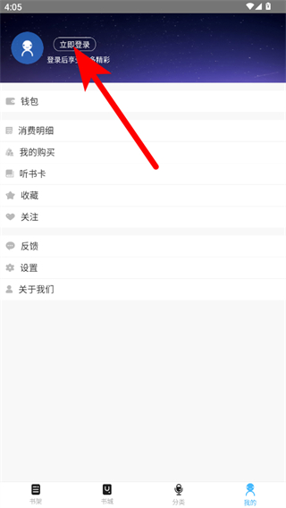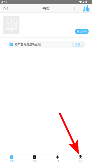 1、在听世界听书app界面,点击右下角我的选项,进入个人界面。