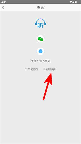 3、在登录选择页面,点击立即注册选项,进入注册界面。