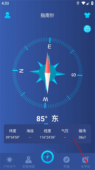 支持海拔、气压、磁场强度、实况天气等专业户外指南针功能