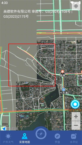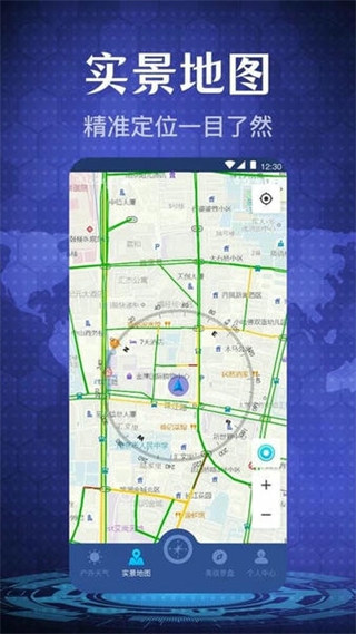 1、点击底部“实景地图”按钮,进入实景地图界面,可查看地图信息。