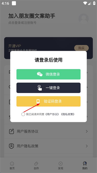 3、在弹窗中点击“验证码登录”选项,进入手机号验证码登录界面。