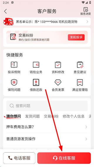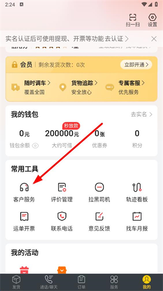1、打开货车帮货主app,在个人页面点击客户服务选项,进入客户服务页面。