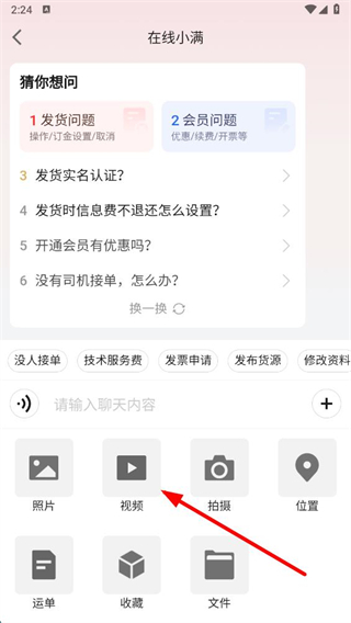 4、在功能菜单中,点击视频选项,选择要发送的视频并发送给客服即可。