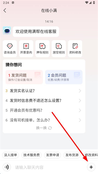 3、在在线客服聊天页面,点击右下角加号按钮,展开功能菜单。