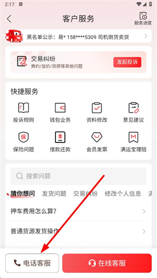 2、在客户服务页面,可选择点击电话客服拨打客服电话。