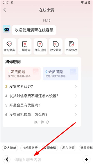 4、在线客服聊天页面底部输入框内,输入聊天内容即可与客服人员沟通。