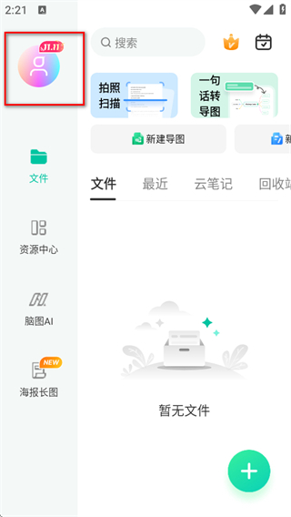 1、打开万兴脑图APP,点击左上角的个人图标,进入个人页面。