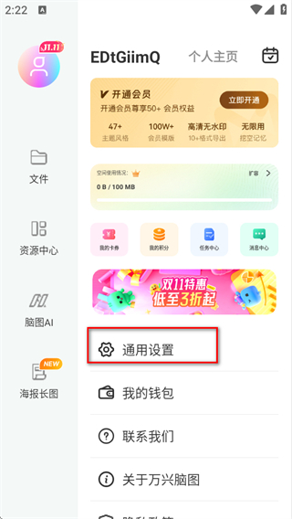 2、在个人页面中,点击通用设置,进入通用设置页面。