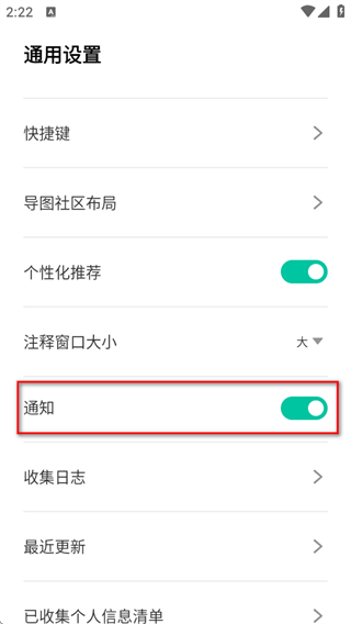 3、在通用设置页面,找到通知选项,点击按钮将其关闭即可。