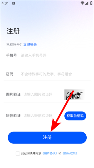 4、在注册的页面,填写信息后点击注册,完成注册的操作。