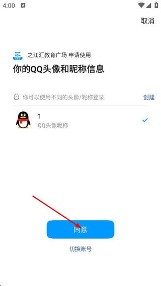 2、在QQ授权页面,点击同意,授权之江汇使用信息。