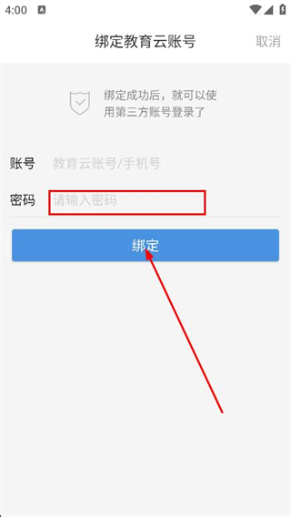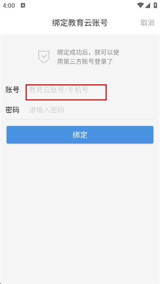 3、进入绑定教育云账号页面,输入教育云账号/手机号。