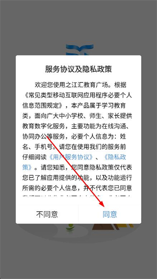 1、打开之江汇APP,在隐私政策弹窗中点击同意。