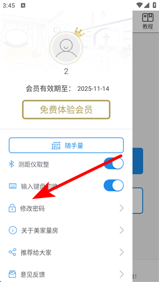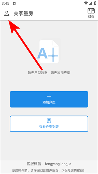 1、打开美家量房APP,点击左上角的个人图标,展开功能菜单。