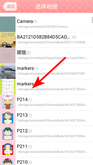 2、在选择相册页面中,选择需要编辑的图片所在的相册,进入选择范围页面。