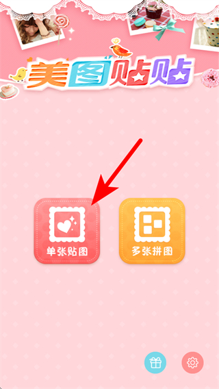 1、打开美图贴贴应用,点击单张贴图,进入选择相册页面。