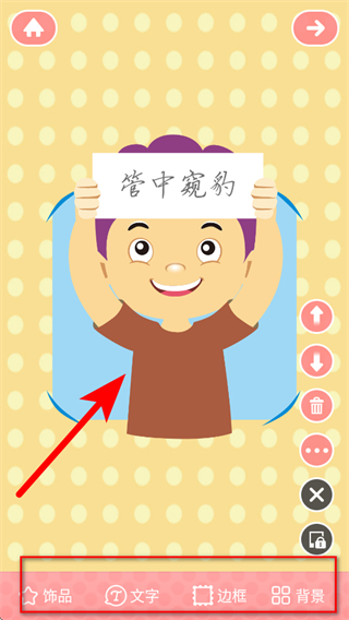 4、在图片编辑页面中,可通过底部的功能,对图片进行装饰编辑,完成后即可保存或分享编辑好的图片。