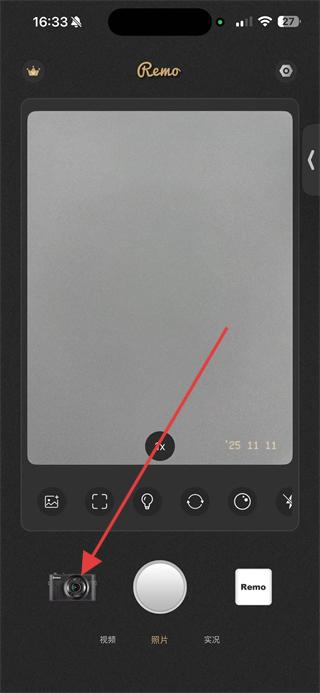 1、打开Remo复古相机应用,点击底部视频选项,进入视频拍摄模式。