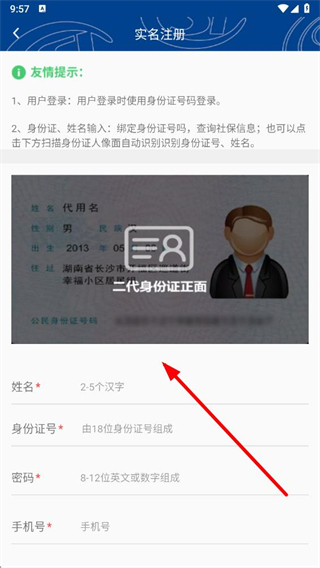 2、在实名注册页面,按照提示输入姓名、身份证号、密码、手机号和确认手机号。