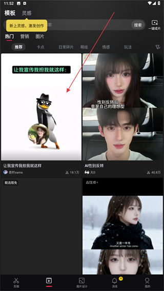 1、打开剪映APP,进入时点击下方剪同款的标签。