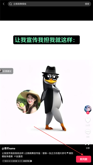 3、进入视频详情的页面内,点击右下方剪同款的按钮即可。