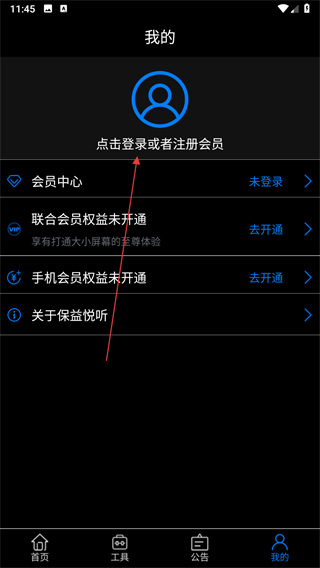 1、打开保益悦听APP,点击右下角我的选项。