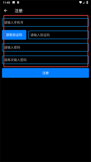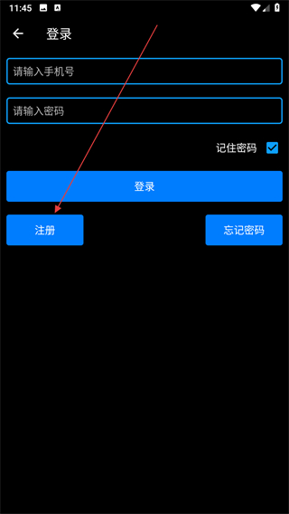 3、在登录页面点击注册按钮,进入注册页面。