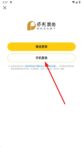 3、在登录选择页面,点击手机登录选项,进入手机号登录页面。
