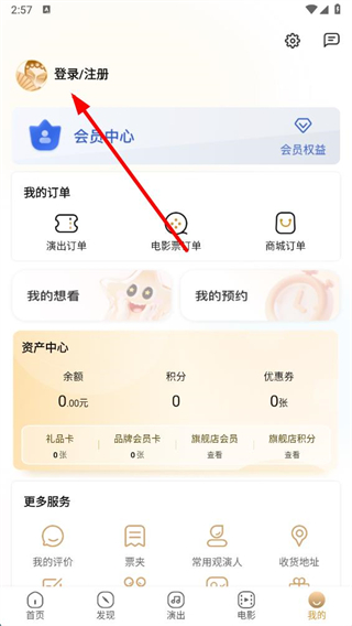 1、打开保利票务app,点击右下角我的选项,进入个人页面。