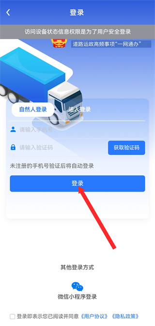 3、在页面面输入手机号等信息后,点击登录未注册的手机号自动完成注册。