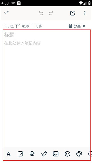 4、登录后可进入笔记编辑页面,输入标题和内容,使用各种工具编辑笔记。