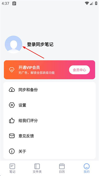 2、在我的页面点击登录同步笔记选项,弹出一键登录窗口。