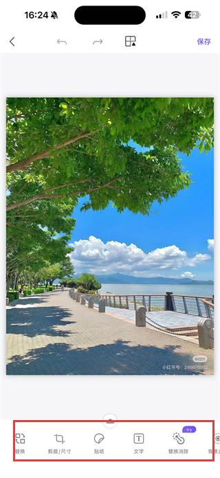 3、进入图片编辑界面后,可进行替换、裁剪/尺寸等编辑操作。