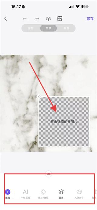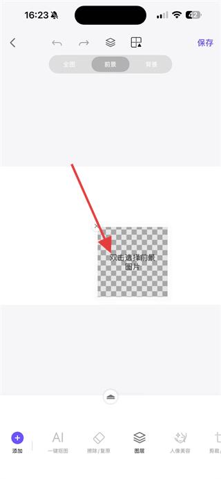 3、双击双击选择前景图片区域,从相册中选取需要更换背景的图片并调整其大小和位置。