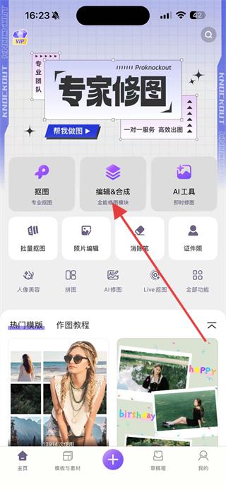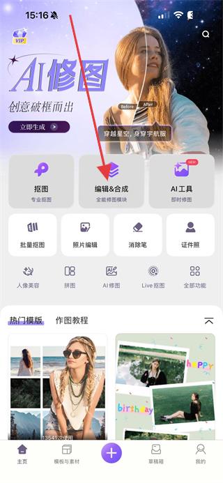 1、打开APP后,点击编辑&合成选项,进入背景与前景选择界面。