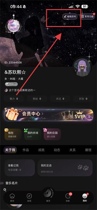 2、在个人页面中点击编辑资料,进入完善个人资料界面。