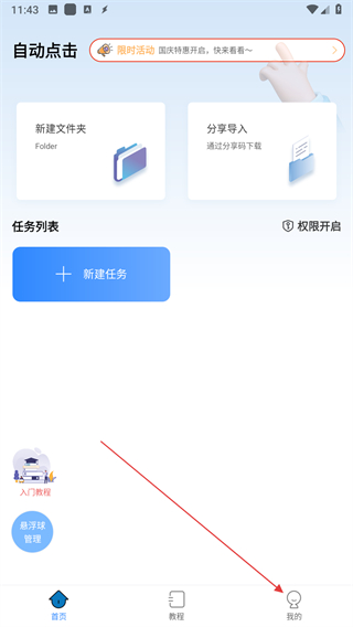 1、打开自动按键点击应用,点击右下角我的选项。
