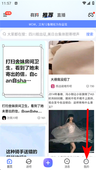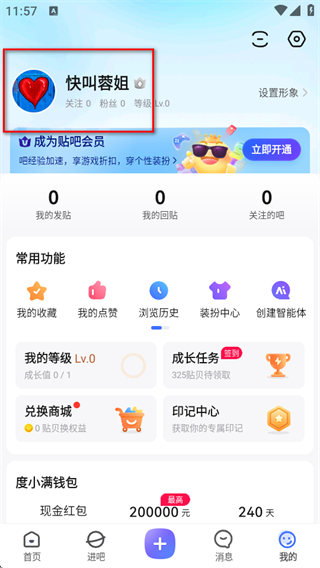 1、打开百度贴吧App,点击底部导航栏的我的选项,进入个人页面。